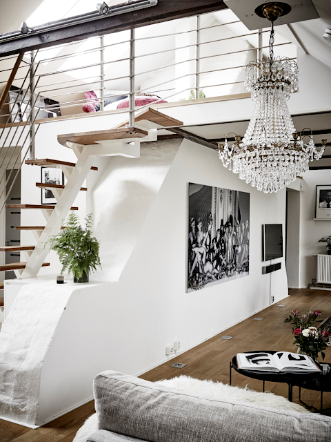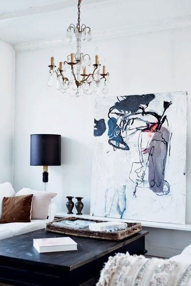 A few days ago my mother in law showed me a beautiful old crystal chandelier that she had put away, for unknown reasons, years ago. She wants me to have it. It is a beautiful handmade piece, like the ones you might find in an antiques store. It is a in very miserable condition, it will need lots of elbow grease, it needs to be polished in order to return to its former shape. It is really going to take me some time before it serves its mission again, illuminate our living. I have always been in love with clutter-free places and Scandinavian design and it means that a statement piece like the crystal pendant lamp will exonerate me from adding other decoration pieces. That's why I can't wait to hang it. On the other hand, I have been really dreaming and longing for a beautiful, old crystal pendant lamp, because chandeliers are elegant and timeless pieces. Morevoer, they look great everywhere, in the living, in a bedroom and even in a kitchen. They just add that necessary dose of glam and taste that makes you say "these old handmade objects are some of the beautiful things of life". Just have a look at the pictures and then go and dig up beautiful old things from the basement of your grannies. Have a great day!